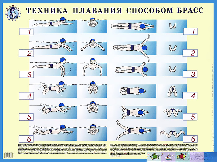 На плакате иллюстрируется и описывается техника плавания способом брасс.