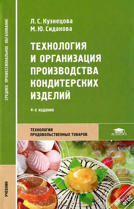 | Полное название книги | М. Ю. Сиданова, Л. С. Кузнецова Технология и организация производства кондитерских изделий |