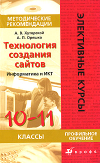 | Полное название книги | А. В. Хуторской, А. П. Орешко Технология создания сайтов. Информатика и ИКТ. 10-11 классы. Методические рекомендации |