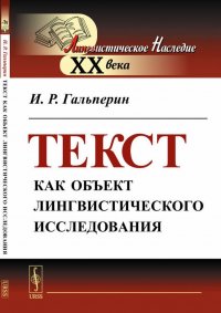 | Полное название книги | И. Р. Гальперин Текст как объект лингвистического исследования |