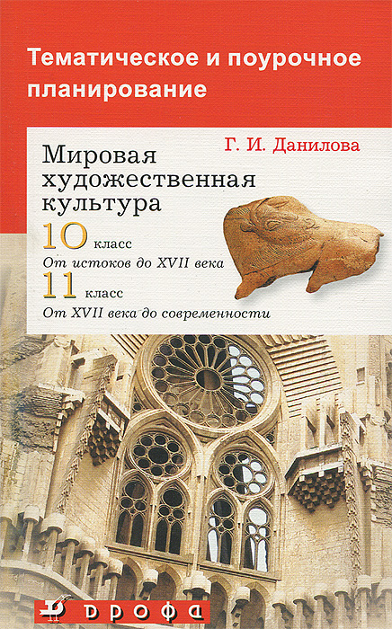 | Полное название книги | Г. И. Данилова Тематическое и поурочное планирование к учебникам "Мировая художественная культура. От истоков до ХVII века. 10 класс" и "Мировая художественная культура. От ХVII века до совре |