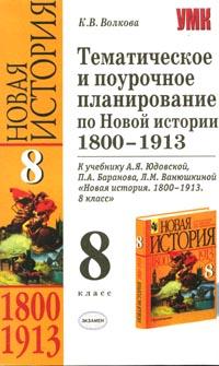 | Полное название книги | К. В. Волкова Тематическое и поурочное планирование к учебнику А.Я.Юдовской, П.А.Баранова, Л.М.Ванюшкиной "Новая история: 1800-1913 гг.: 8 класс" |