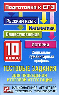 | Полное название книги | О. А. Котова, А. Ю. Кузнецов, С. А. Шестаков Тестовые задания для проведения итоговой аттестации. Русский язык, математика, обществознание, история. Подготовка к ЕГЭ. 10 класс |