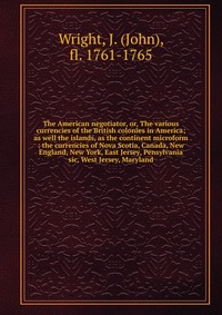 The American negotiator, or, The various currencies of the British colonies in America. As well the islands, as the continent microform. The currencies of Nova Scotia, Canada, New England, New York, East Jersey, Pensylvania sic, West Jersey, Maryland. Воспроизведено в оригинальной авторской орфографии издания 1765 года (издательство "London : Printed for the proprietors by J. Smith ... and sold by Messieurs Hawes, Clarke and Collins ... and by the booksellers in Great- Britain and Ireland"). Это и многое другое вы найдете в книге The American negotiator (John Wright)