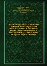 | Полное название книги | Wilson Thompson The autobiography of Elder Wilson Thompson embracing a sketch of his life, travels, & ministerial labors, in which is included a concise history of the old order of regular Baptist church |