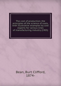 | Полное название книги | Burt Clifford, 1874-, Bean The cost of production; the principles of the science of costs, with illustrative examples by cost experts for various lines of manufacturing industry (1905) |