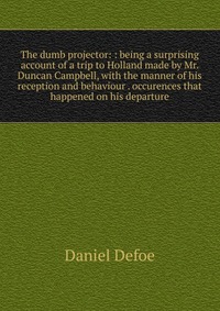 | Полное название книги | Daniel Defoe The dumb projector: : being a surprising account of a trip to Holland made by Mr. Duncan Campbell, with the manner of his reception and behaviour . occurences that happened on his departure |