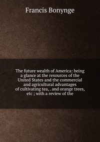 | Полное название книги | Francis Bonynge The future wealth of America: being a glance at the resources of the United States and the commercial and agricultural advantages of cultivating tea, . and orange trees, etc ; with a review o |