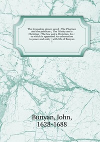 | Полное название книги | John Bunyan The Jerusalem sinner saved ; The Pharisee and the publican ; The Trinity and a Christian ; The law and a Christian, &c. : to which is appended An exhortation to peace and unity ; with lif |