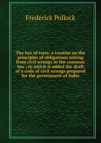 | Полное название книги | Frederick Pollock The law of torts: a treatise on the principles of obligations arising from civil wrongs in the common law ; to which is added the draft of a code of civil wrongs prepared for the government o |
