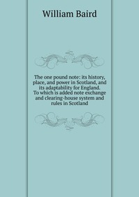 | Полное название книги | William Baird The one pound note: its history, place, and power in Scotland, and its adaptability for England. To which is added note exchange and clearing-house system and rules in Scotland |