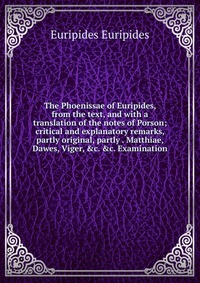 | Полное название книги | Euripides Euripides The Phoenissae of Euripides, from the text, and with a translation of the notes of Porson; critical and explanatory remarks, partly original, partly . Matthiae, Dawes, Viger, &c. &c. |
