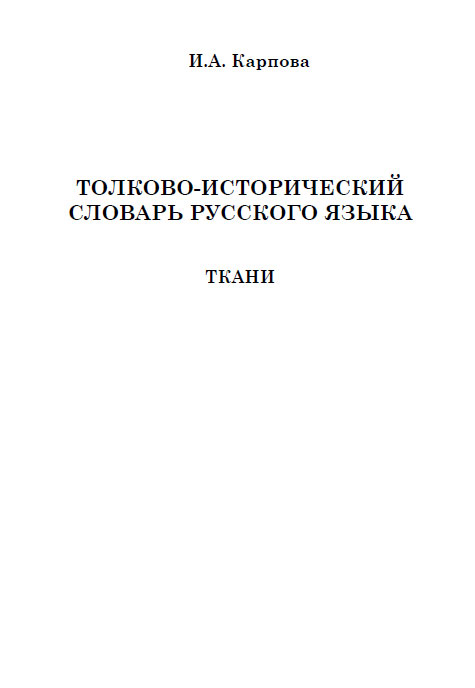 | Полное название книги | И. А. Карпова Толково-исторический словарь русского языка. Ткани |