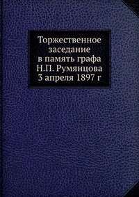 | Полное название книги | Коллектив авторов Торжественное заседание в память графа Н.П. Румянцова 3 апреля 1897 г |