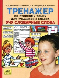 | Полное название книги | Т. Л. Мишакина, С. Б. Чижикова, С. А. Гладкова, С. А. Паршутина Тренажер по русскому языку для учащихся 3 класса. Учу словарные слова |