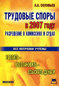 | Полное название книги | А. А. Соловьев Трудовые споры. Разрешение в комиссиях и судах в 2007 году |