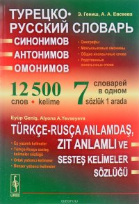 | Полное название книги | Э. Гениш, А. А. Евсеева Турецко-русский словарь синонимов, антонимов и омонимов / Turkce-rusca anlamdas, zit anlamli ve sestes kelimeler sozlugu |