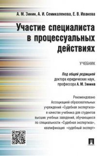 | Полное название книги | А. И. Семикаленова, А. М. Зинин Участие специалиста в процессуальных действиях. Учебник |