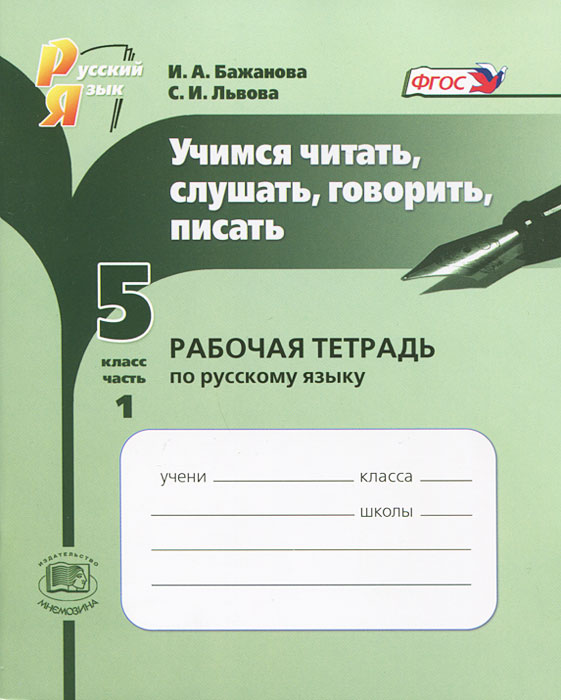 | Полное название книги | С. И. Львова, И. А. Бажанова Учимся читать, слушать, говорить, писать. 5 класс. Рабочая тетрадь. В 2 частях. Часть 1 |