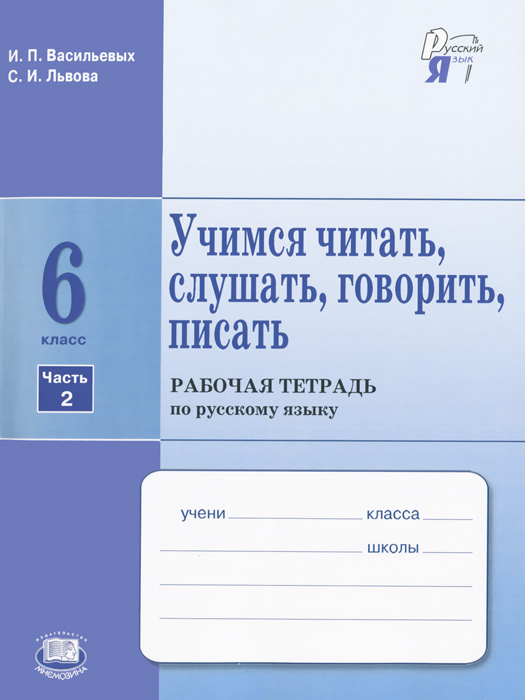 | Полное название книги | С. И. Львова, И. П. Васильевых Учимся читать, слушать, говорить, писать. 6 класс. Рабочая тетрадь по русскому языку. В 2 частях. Часть 2 |