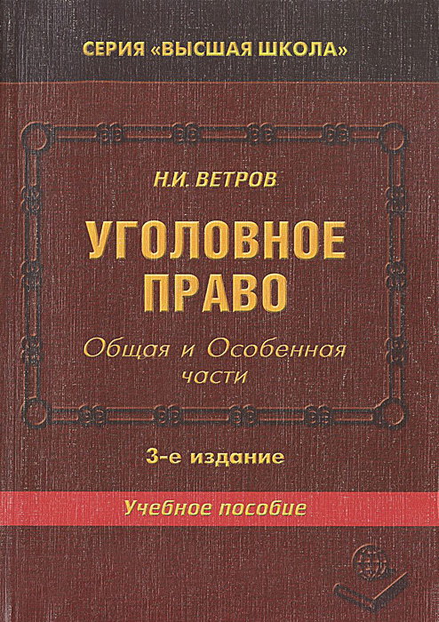 | Полное название книги | Н. И. Ветров Уголовное право. Общая и Особенная части |