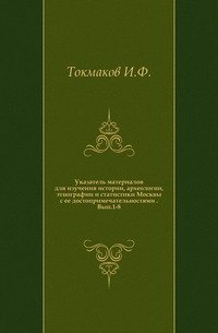 | Полное название книги | И. Ф. Токмаков Указатель материалов для изучения истории, археологии, этнографии и статистики Москвы с ее достопримечательностями |