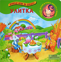 До чего увлекательно сочетать чтение книжки с игрой! Чтобы совершить прогулку с улиткой, достаточно чуть приподнять резиновую игрушку над книжкой, и она легко заскользит по картонным страничкам, переползая с одного места на другое: с полянки под листочек, где накрыт стол, оттуда на дощатый мостик, а с него на луг. При этом улитка может поворачиваться в разные стороны, чтобы приветствовать своих знакомых и найти знакомые цвета. Ведь в начале своего пути она увидела разноцветную радугу!