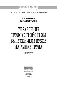 | Полное название книги | Ю. А. Дмитриева, А. Я. Кибанов Управление трудоустройством выпускников вузов на рынке труда |