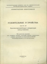| Полное название книги | Автор не указан Усилители устройства. Часть 3. Звуковоспроизводящая аппаратура киноустановок |