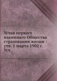 | Полное название книги | Коллектив авторов Устав перваго взаимнаго: Общества страхования жизни утв. 1 марта 1902 г.Уст |