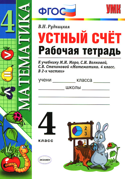| Полное название книги | В. Н. Рудницкая Устный счет. 4 класс. Рабочая тетрадь |
