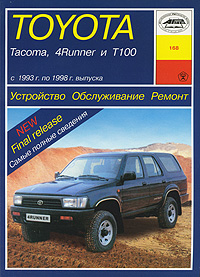 Руководство составлено на основе опыта работы станции техобслуживания и содержит технические характеристики, описания ремонта отдельных узлов, раздел, посвященный поиску и устранению неисправностей и рекомендации по техническому обслуживанию автомобилей Toyota Tacoma, 4Runner и Т100.