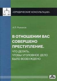 | Полное название книги | А. П. Рыжаков В отношении Вас совершено преступление. Что делать, чтобы уголовное дело было возбуждено |
