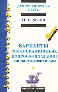 | Полное название книги | М. С. Смирнова, О. А. Петрусюк, В. Б. Пятунин, Е. В. Баранчиков Варианты экзаменационных вопросов и заданий по географии для поступающих в вузы |