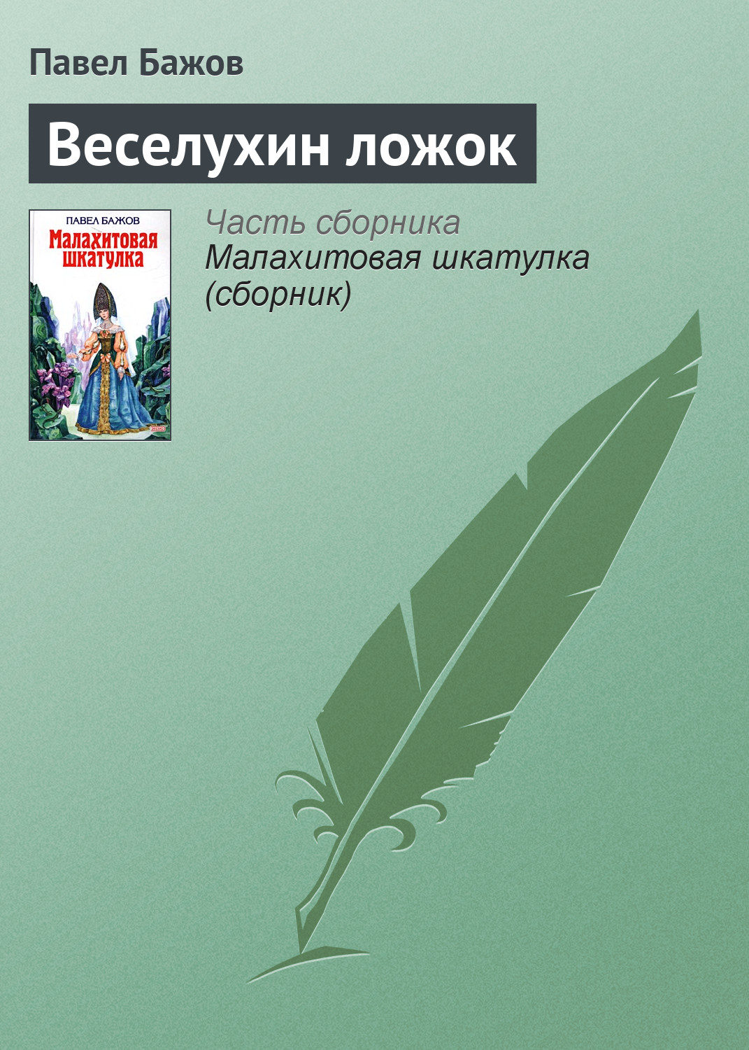 Подробная информация о книге «Веселухин ложок П. П. Бажов». Сайт не предоставляет возможности читать онлайн или скачать бесплатно книгу «Веселухин ложок П. П. Бажов».