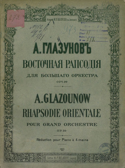 | Полное название книги | Александр Константинович Глазунов, Восточная рапсодия для большого оркестра |