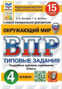 | Полное название книги | Волкова Елена Васильевна, Цитович Галина Ивановна ВПР Окружающий мир 4 класс 15 вариантов. Типовые задания. ФГОС |