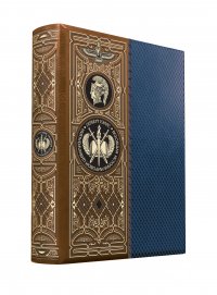 Издание в коллекционном инкрустированном переплете ручной работы, первый дополнительный тираж в 2019 году составит 10 экземпляров. Переплет ручной работы изготовлен по технологиям XIX века из двух видов кожи натурального дубления, темно-синей и коричневой, с применением каратной золотой фольги и натурального пигмента; оформлен по авторским рисункам, созданным специально для данного издания. В оформлении переплета использованы растительные и геометрические орнаменты, благодаря им книга будет отлично смотреться на любой книжной полке. Многоуровневое тиснение. Обрезы торшонированы, окрашены и вызолочены. Форзацы из дизайнерской фактурной бумаги, подобранной в цвет переплета. Каптал и ляссе золотистого цвета. Иллюстрации графические и цветные. Книга в кожаном переплете ручной работы послужит нескольким поколениям читателей.