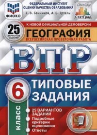 | Полное название книги | С. В. Банников Всероссийская проверочная работа. География. 6 класс. 25 вариантов. Типовые задания. ФГОС |