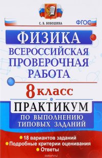 | Полное название книги | С. Б. Бобошина Всероссийские проверочные работы. Физика. 8 класс. Практикум по выполнению типовых заданий. ФГОС |