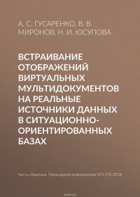 Подробная информация о книге «Встраивание отображений виртуальных мультидокументов на реальные источники данных в ситуационно-ориентированных базах В. В. Миронов, Юсупова Н. И., А. С. Гусаренко». Сайт не предоставляет возможности читать онлайн или скачать бесплатно книгу «Встраивание отображений виртуальных мультидокументов на реальные источники данных в ситуационно-ориентированных базах В. В. Миронов, Юсупова Н. И., А. С. Гусаренко».