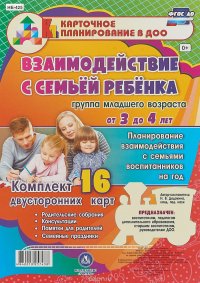 | Полное название книги | Н. В. Додокина Взаимодействие с семьей ребенка. Планирование взаимодействия с семьями воспитанников на год. Группа младшего возраста. От 3 до 4 лет (комплект из 16 двусторонних карт) |