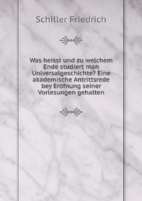 | Полное название книги | Schiller Friedrich Was heisst und zu welchem Ende studiert man Universalgeschichte? Eine akademische Antrittsrede bey Erofnung seiner Vorlesungen gehalten |