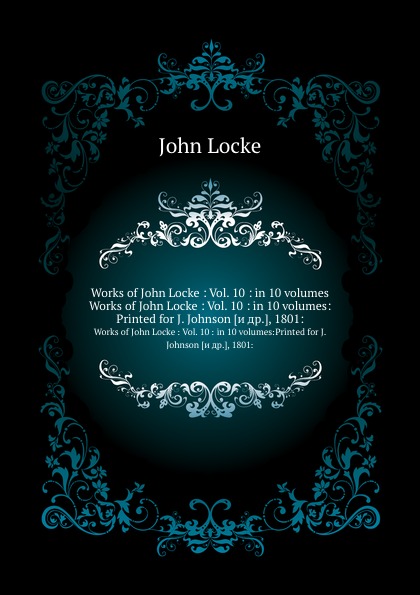 | Полное название книги | John Locke Works of John Locke : Vol. 10 : in 10 volumes. Works of John Locke : Vol. 10 : in 10 volumes:Printed for J. Johnson [и др.], 1801: |