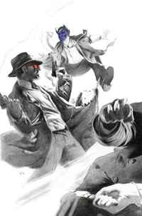 "In the dark and steamy jungles of Madripoor, the flashing claws of Logan, the blazing bullets of Cyclops, and the dashing fists of the Angel met with wave after wave of beserk headhunters, all willing to protect the secrets of the Temple-Tomb of Cyttorak with their lives! The ancient treasure map of mercenary Cain Marko, with its siren-song of the priceless gigantic ruby of the fabled god-king, had lured them only into the icy claws of Death!" Collecting X-MEN NOIR: MARK OF CAIN #1-4 and WEAPON X NOIR. Это и многое другое вы найдете в книге X Men Noir: Mark Of Cain Premiere HC (Fred Van Lente, Dennis Calero, Tom Cohen)