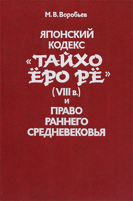| Полное название книги | М. В. Воробьев Японский кодекс "Тайхо Еро Ре" (VIII в.) и право раннего средневековья |