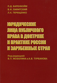 | Полное название книги | П. Д. Баренбойм, Л. К. Терещенко, В. И. Лафитский Юридические лица публичного права в доктрине и практике России и зарубежных стран |