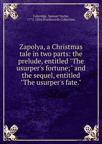 | Полное название книги | Samuel Taylor Coleridge Zapolya, a Christmas tale in two parts |